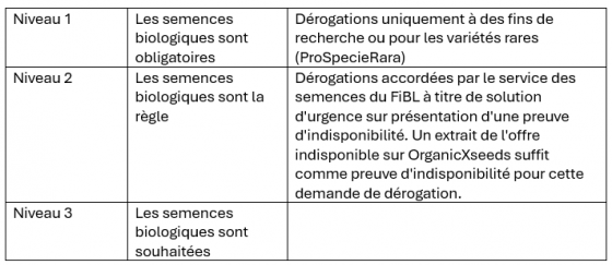 Avec la fin de la saison de contrôle 2025, la newsletter fait peau neuve au niveau du contenu en informations techniques. Dans cette nouvelle ère, la newsletter éprouvée est complétée par des thèmes techniques d'actualité et devient une source d'informations exclusive pour la clientèle de bio.inspecta. | | Bien semer : règles pour les semis d'hiver | | Avec la baisse des températures, le semis des cultures arables hivernales, telles que les céréales, approche lentement mais sûrement. Le niveau de disponibilité est déterminant si l'on veut éviter des points de sanction inutiles. La disponibilité des semences peut être consultée dans la base de données OrganicXseeds ou dans la liste des variétés en ligne du FiBL. Les trois niveaux différents exigent ce qui suit : | | Nouvelles parcelles : semer et commercialiser en parallèle conformément aux normes biologiques | | Lors de la conversion de nouvelles parcelles en 2026, il peut être intéressant de veiller à la conformité biologique dès l'ensemencement des cultures éventuelles. En effet, c'est la seule condition pour que la récolte de l'année suivante puisse être commercialisée sous le label Bourgeon en conversion.