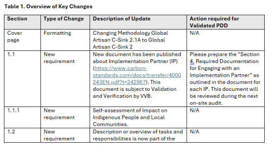 Where to find it: Artisan webpage → Endorsement, Validation, and Verification Process → Project Design Document. | | | Project Design Document Update | | | As part of Carbon Standards International’s compliance with the evolving Voluntary Carbon Market requirements, we are updating our Project Design Document (PDD) accordingly. Please find below a description of the changes and who are affected.