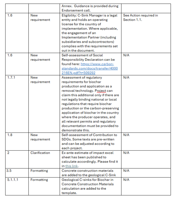 Where to find it: Artisan webpage → Endorsement, Validation, and Verification Process → Project Design Document. | | | f. Rule update for Biochar in Concrete Construction Materials | | | Description: Provides guidance and additional requirements for applying Global Artisan biochar in concrete construction materials. Matrix positive list for Biochar C-Sink document has been updated accordingly to include this matrix in Artisan.