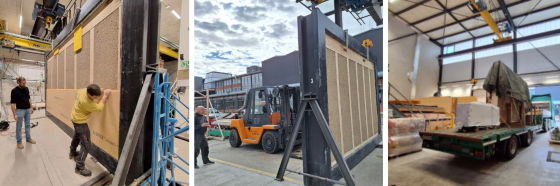 A full-scale exterior wall element is currently undergoing sound insulation testing at EMPA (Swiss Federal Laboratories for Materials Science and Technology) to evaluate its acoustic insulation performance.